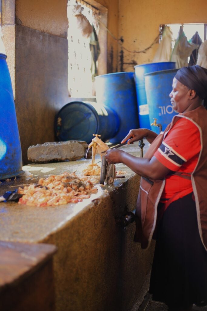 I Ugandas slagterier og kødpakkerier er arbejdsvilkårene præget af lave lønninger og manglende adgang til basale hygiejnefaciliteter som rent vand og toiletter. Langt hovedparten af slagteriarbejderne arbejder i den uformelle økonomi – det vil typisk sige uden kontrakter og sociale sikkerhedsnet – og kun et fåtal er organiseret i en fagforening.